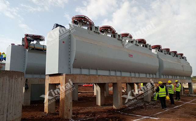 Jjf浮选机的槽体采用的是浅槽型设计,且槽体底部设有导流筒体和家底,引导槽体底部矿浆进入叶轮,可促使槽内矿浆按固定方向循环,从而保证矿浆多次循环,多次充气,增加选别机会,并有利于矿浆悬浮。